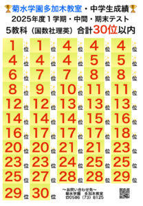 ■南中「総合テスト」、通常授業前後にテスト対策時間割【菊水学園 多加木教室】